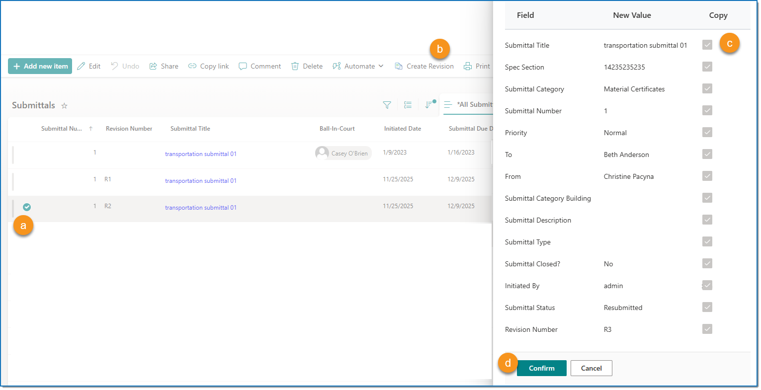 e. The new Revision form will open with the copied values. Follow steps 1-7.